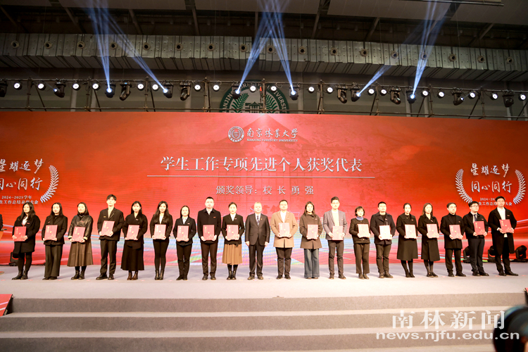 会上,张晓琴代表学校向长期关心支持学校教育事业发展的企业和社会各界人士表示衷心感谢,并从“聚焦信仰根基持续筑牢,不断提高思政教育引领力”“聚焦人才培养精准发力,不断增强高素质人才竞争力”“聚焦‘五育’并举提质增效,不断彰显素质教育生命力”“聚焦保障支持关爱帮扶,不断凝聚服务育人协同力”等四个方面,全面回顾了本学年度学生工作的扎实举措与丰硕成果。她指出,过去一年,面对“一校三区”办学新格局,学校坚持以习近平新时代中国特色社会主义思想为指引,全面贯彻党的教育方针,紧扣立德树人根本任务,构建起“铸魂领航、赋能引航、融合助航、精准护航”的 “四航”学生工作体系,各项工作取得突破性进展,为学校“双一流”和高水平大学建设提供了有力支撑。她强调,在以中国式现代化全面推进强国建设、民族复兴伟业的新征程上,要牢记习近平总书记给农林高校师生重要回信嘱托,以更高的政治站位、更大的育人格局、更创新的工作方法,用心用情做好学生成长成才的引路人。她勉励全体南林学子心怀“国之大者”,传承南林精神,把个人理想融入国家发展伟业,以青春之我、奋斗之我,勇担绿色使命,争做时代新人,在实现中华民族伟大复兴的生动实践中放飞青春梦想,书写无愧于时代、无愧于人民的精彩华章。
