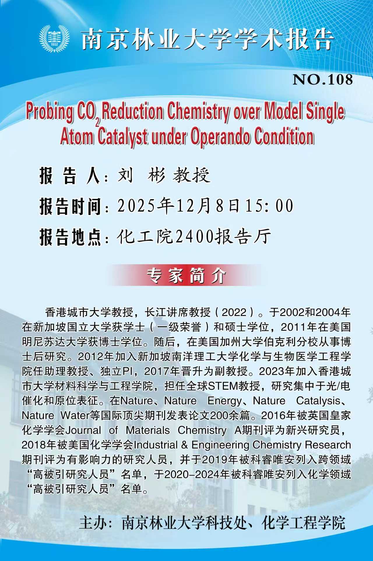 活动预告 首页 -活动预告 Probing CO₂ Reduction Chemistry over Model Single Atom Catalyst under Operando Condition 来源:通讯员:摄影:【报告人】刘 彬 教授 【报告时间】2025年12月8日 15:30 【报告地点】化工院2400报告厅编辑:浏览:时间:2025-12-03 字号:【大中小】